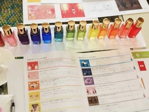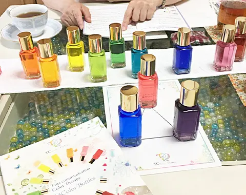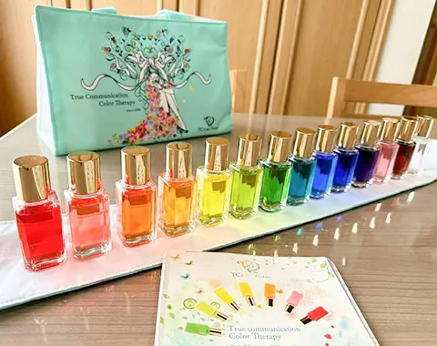 誰にでも簡単にカラーセラピーができるようしっかりとしたマニュアルと14本のカラーボトル付きの講座は、1日で取得することができ、全国的に大人気のシステムです。