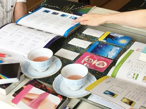 クライアントは、「セレクションカラーブック」という14色の前面見開きでA3サイズの迫力ある色見本から、直感で色を選んでいただきます。そして、アソシエーションカードと、3枚の質問カードの組み合わせによって、自己をみつめながら、これからどのような人生にして行きたいのかを考える手助けをして行きます。